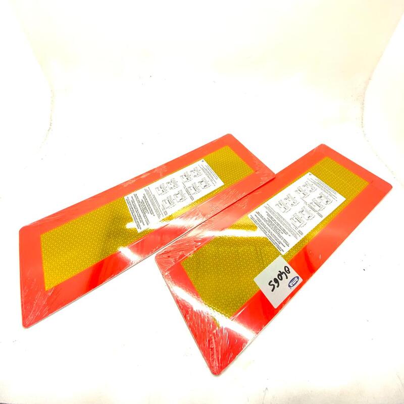 Kit of 2 panels for trailers with a capacity exceeding 3500 kg, dimensions 562x196x1.2, in aluminum and with class 3 reflective/fluorescent film. UN ECE Regulation 70/01.