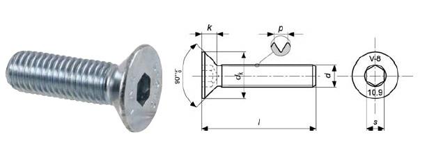 M8x1.25 SCREW L=40 CONICAL HEAD IN STEEL R=10.9 – CERMAG – 64752