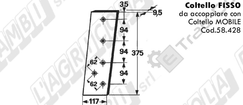 COLTELLO FISSO LUNGHEZZA 375 mm. TIPO GALLIGNANI – L’AGRICOLA RICAMBI – 58429