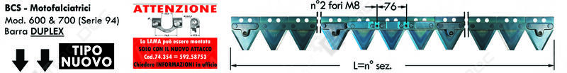 LAMA A 15 SEZIONI LUNGHEZZA 1,20 m. ATTACCO CENTRALE TIPO BCS 59058639 – L’AGRICOLA RICAMBI – 74375-15